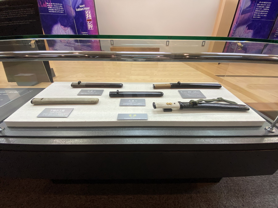 If you come on the first Sunday of the month or during the Cutlery Festival/Hamono Matsuri in October, you can also see craftsmen at work making saya, habaki, and other parts of the Japanese sword.