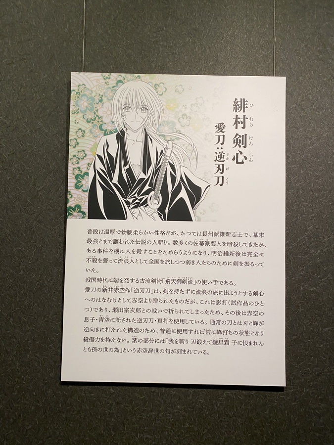 As you make your way through the exhibit, there is information for both sword lovers and fans of the Rurouni Kenshin series.